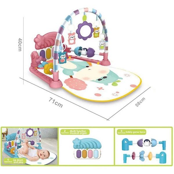 مهمترین ویژگی این مدل، پیانوی موزیکال قابل تنظیم آن است که با ضربه پای نوزاد صداهای شاد و آموزشی تولید میکند و باعث تقویت هماهنگی دست و پا، حس کنجکاوی و تمرکز کودک میشود. آویزهای رنگارنگ با اشکال فانتزی نیز قدرت بینایی، شناخت رنگها و مهارت حرکتی ظریف نوزاد را تقویت میکنند. تشک نرم و لطیف آن از متریال باکیفیت و ضد حساسیت ساخته شده تا پوست حساس نوزاد در امنیت کامل باشد.