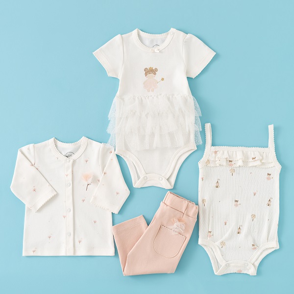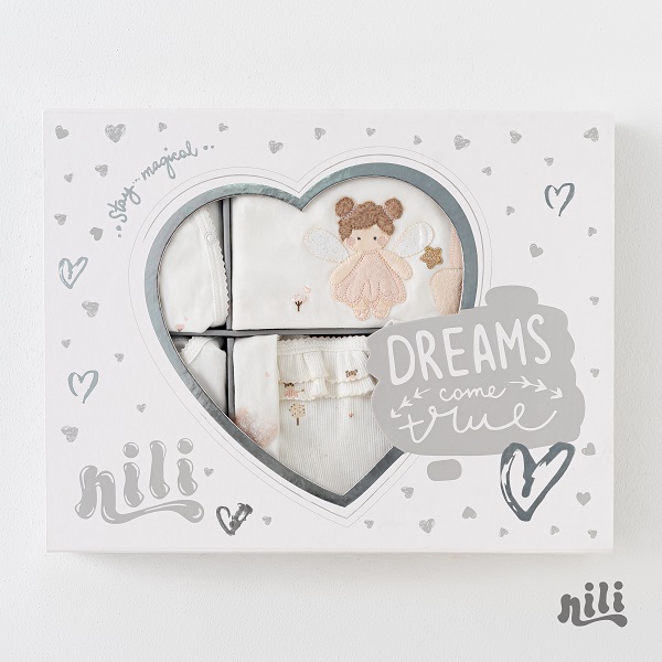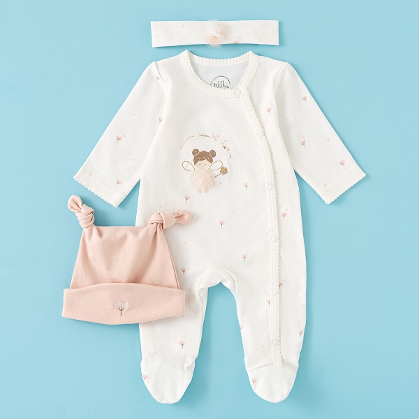 سرهمی، بادی آستین کوتاه، بادی رکابی، مانتو، شلوار، کلاه، دستکش، جوراب، پیش‌بند، پتو دورپیچ کلاه‌دار، آروغ‌گیر و سایر تکه‌های کاربردی که نوزاد در روزهای اول تولد به آن‌ها نیاز دارد. هماهنگی رنگ و طرح در همه تکه‌ها ظاهر ست را بسیار جذاب و عکس‌پسند می‌کند.