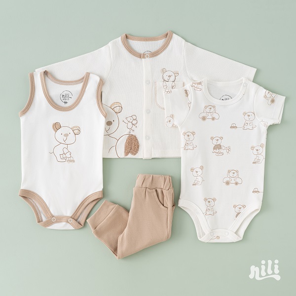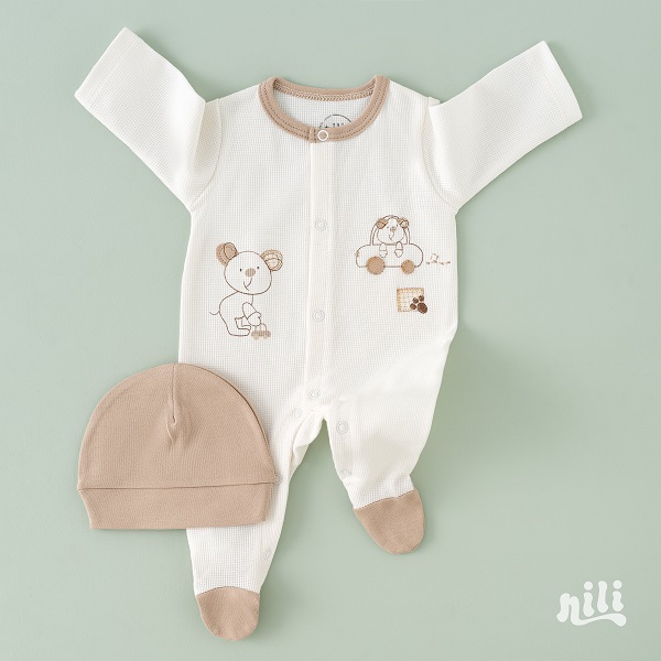 ست 13 تیکه نیلی مدل موش شامل مجموعه‌ای از لباس‌های ضروری مانند : سرهمی، بادی آستین کوتاه، بادی رکابی، مانتو، شلوار، کلاه، دستکش، جوراب، پیش‌بند، پتو دورپیچ کلاه دار، آروغ گیر می باشد. این ست با طراحی هماهنگ و رنگ‌های زنده، تجربه‌ای دلنشین و راحت برای نوزاد و والدین فراهم می‌کند.