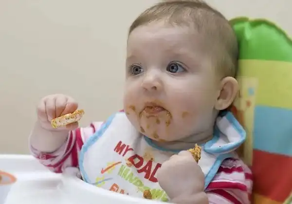 در این سن، کودک باید روزانه 3 وعده غذای کمکی و 2 تا 3 وعده شیر مادر یا شیر خشک بخورد.