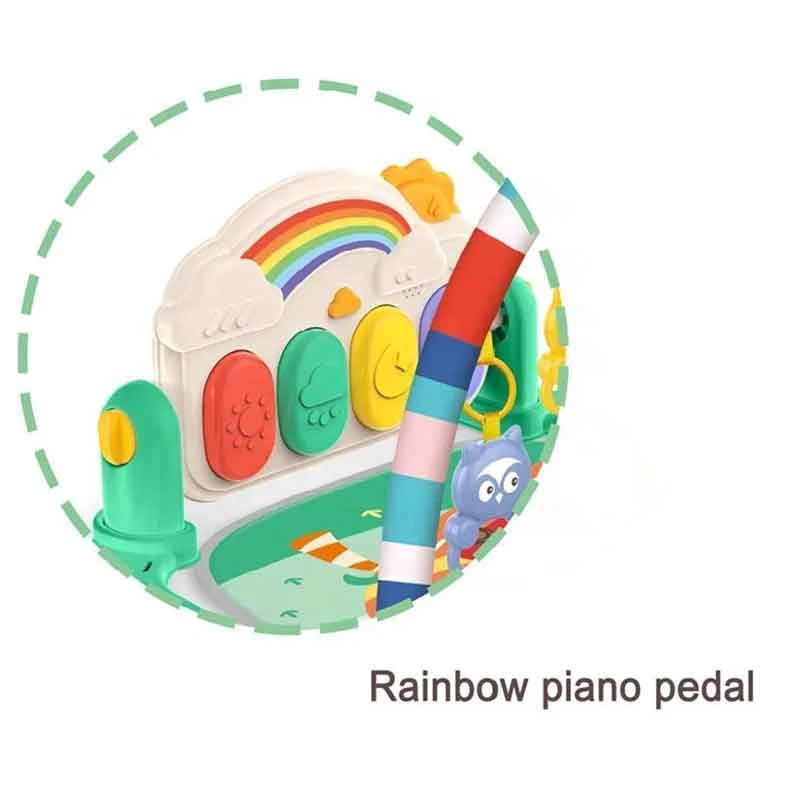 این تشک بازی دارای پیانوی تعاملی در بخش انتهایی است که نوزاد هنگام ضربه زدن با پا یا دست می‌تواند صداهای مختلف موزیکال را تجربه کند. این عملکرد علاوه بر سرگرمی، به تقویت مهارت‌های حرکتی و افزایش هماهنگی دست و پا کمک می‌کند. آویزهای پولیشی و پلاستیکی متعدد در بالای تشک نیز توجه نوزاد را جلب کرده و باعث تقویت بینایی، حس لامسه و دنبال‌کردن اجسام می‌شود.