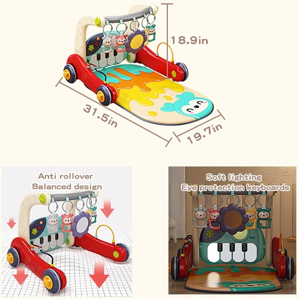 در مرحلهی 0 تا 6 ماهگی، این تشک بهعنوان یک پلیمت ویژه تایم شکم (Tummy Time) عمل کرده و به تقویت گردن، دستها و افزایش مهارتهای حرکتی کمک میکند. از 6 تا 12 ماهگی کودک میتواند در حالت نشسته با پیانو، اسباببازیهای آویز و صفحه جلویی سرگرم شود. همچنین این تشک برای 12 تا 36 ماهگی تبدیل به یک واکر پایدار و ایمن میشود و کودک را در یادگیری راه رفتن همراهی میکند.