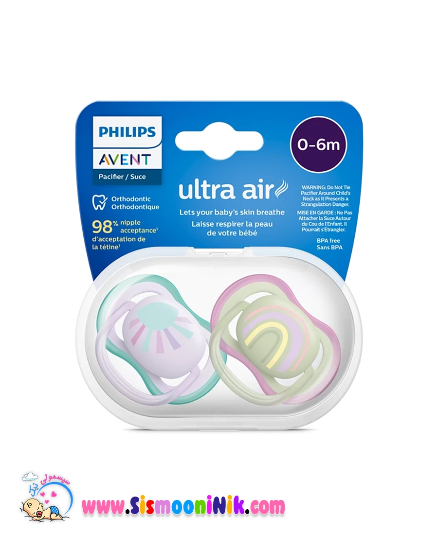 پستانک الترا ایر اونت 0-6 ماه خورشید و رنگین کمان را از فروشگاه معتبر سیسمونی نیک با گارانتی اصالت کالا تهیه کنید و آرامش را به نوزاد دلبندتان هدیه دهید! 🌈