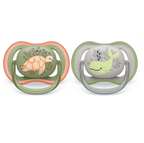 پستانک اونت اولترا ایر 18-6 ماه طرح لاک پشت و وال مناسب نوزادان ۶ تا ۱۸ ماه است و با طراحی فوقسبک و دریچههای تهویه بزرگ، از حساسیت و تعریق اطراف دهان جلوگیری میکند. سری ارتودنسی سیلیکونی آن بسیار نرم بوده و به رشد طبیعی فک و دندان کمک میکند.