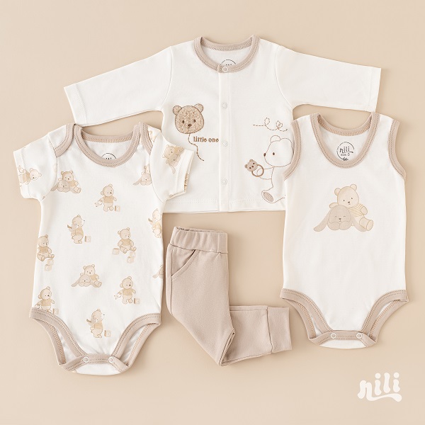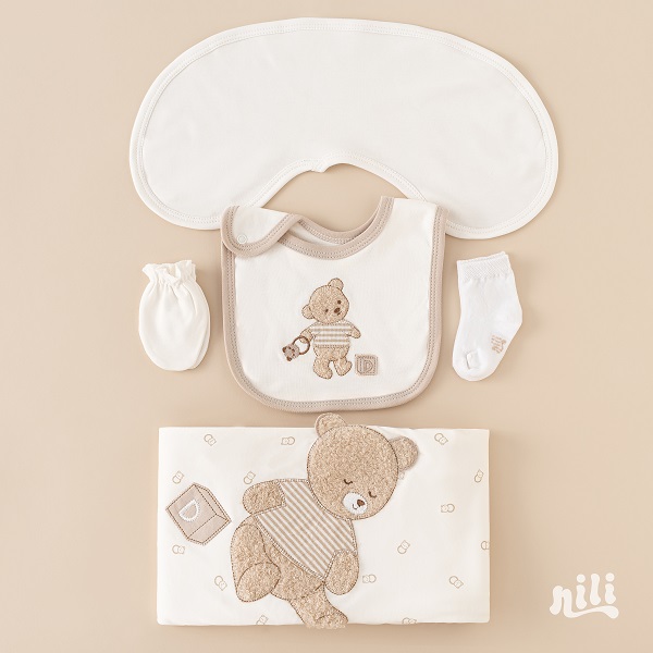 ست 13 تیکه نیلی مدل مکعب شامل مجموعهای از لباسهای ضروری مانند : سرهمی، بادی آستین کوتاه، بادی رکابی، مانتو، شلوار، کلاه، دستکش، جوراب، پیشبند، پتو دورپیچ کلاه دار، آروغ گیر می باشد. این ست با طراحی هماهنگ و رنگهای زنده، تجربهای دلنشین و راحت برای نوزاد و والدین فراهم میکند.