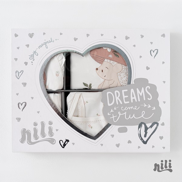 ست 13 تیکه نیلی مدل جوجه تیغی دختر شامل مجموعه‌ای از لباس‌های ضروری مانند : سرهمی، بادی آستین کوتاه، بادی رکابی، مانتو، شلوار، کلاه، دستکش، جوراب، پیش‌بند، پتو دورپیچ کلاه دار، آروغ گیر می باشد. این ست با طراحی هماهنگ و رنگ‌های زنده، تجربه‌ای دلنشین و راحت برای نوزاد و والدین فراهم می‌کند.